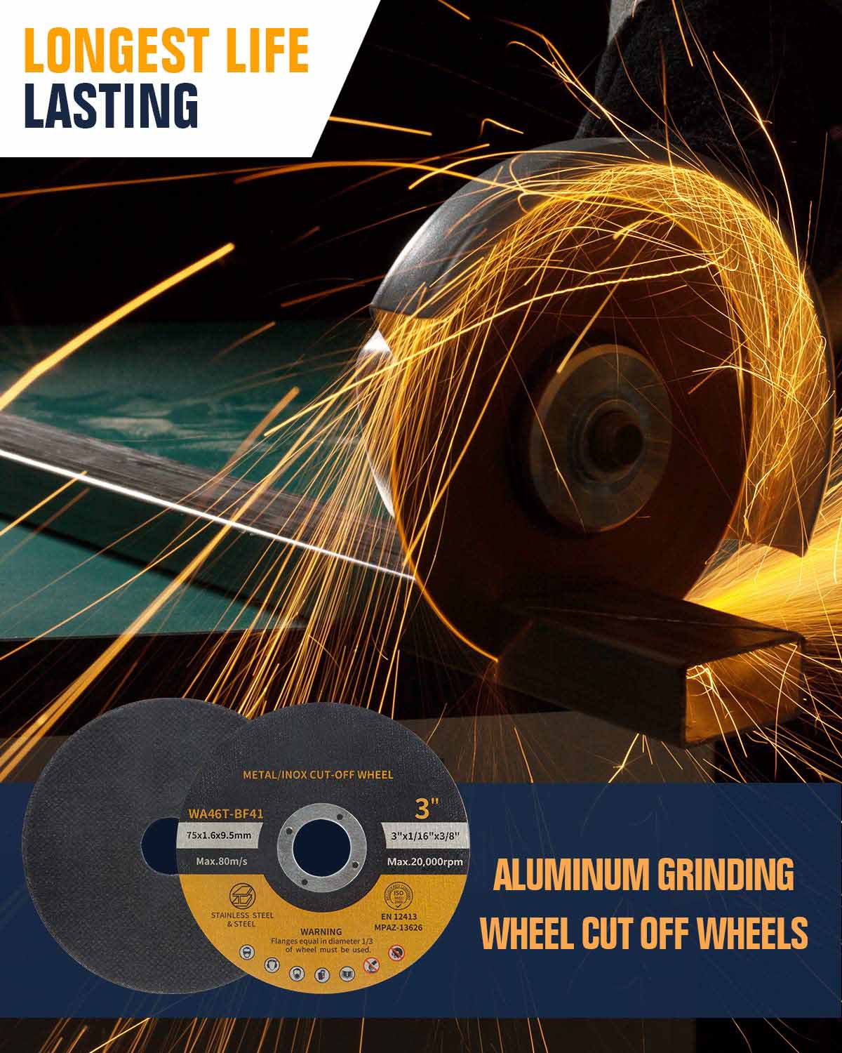 అధిక-నాణ్యత రాపిడితో తయారు చేయబడింది మరియు వేగంగా, సున్నితమైన కోతలు కోసం రీన్ఫోర్స్డ్ రెసిన్ బాండ్లను.